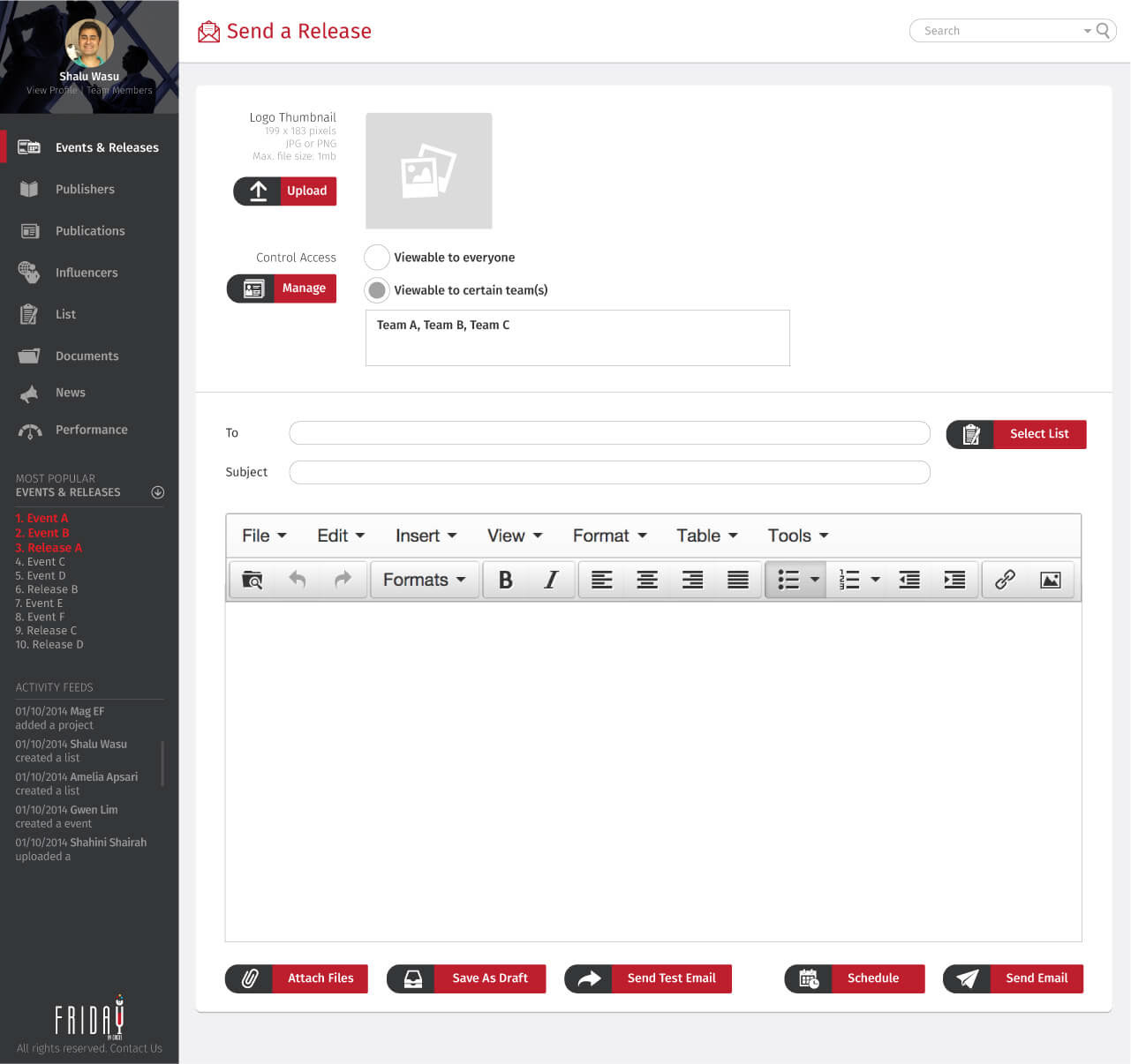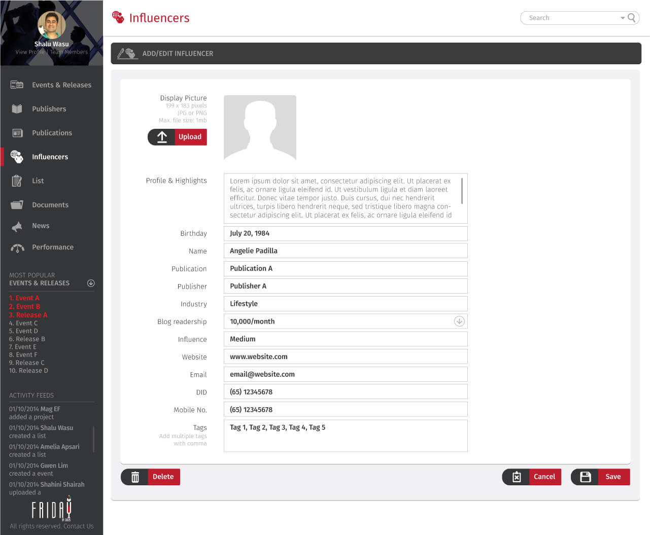 Friday is Ogilvy is a Public Relations platform meant for internal use amongst team members to organise information related to influencers, content publishers, publication information and so on.UI / UX design and development was carried out for this platform.