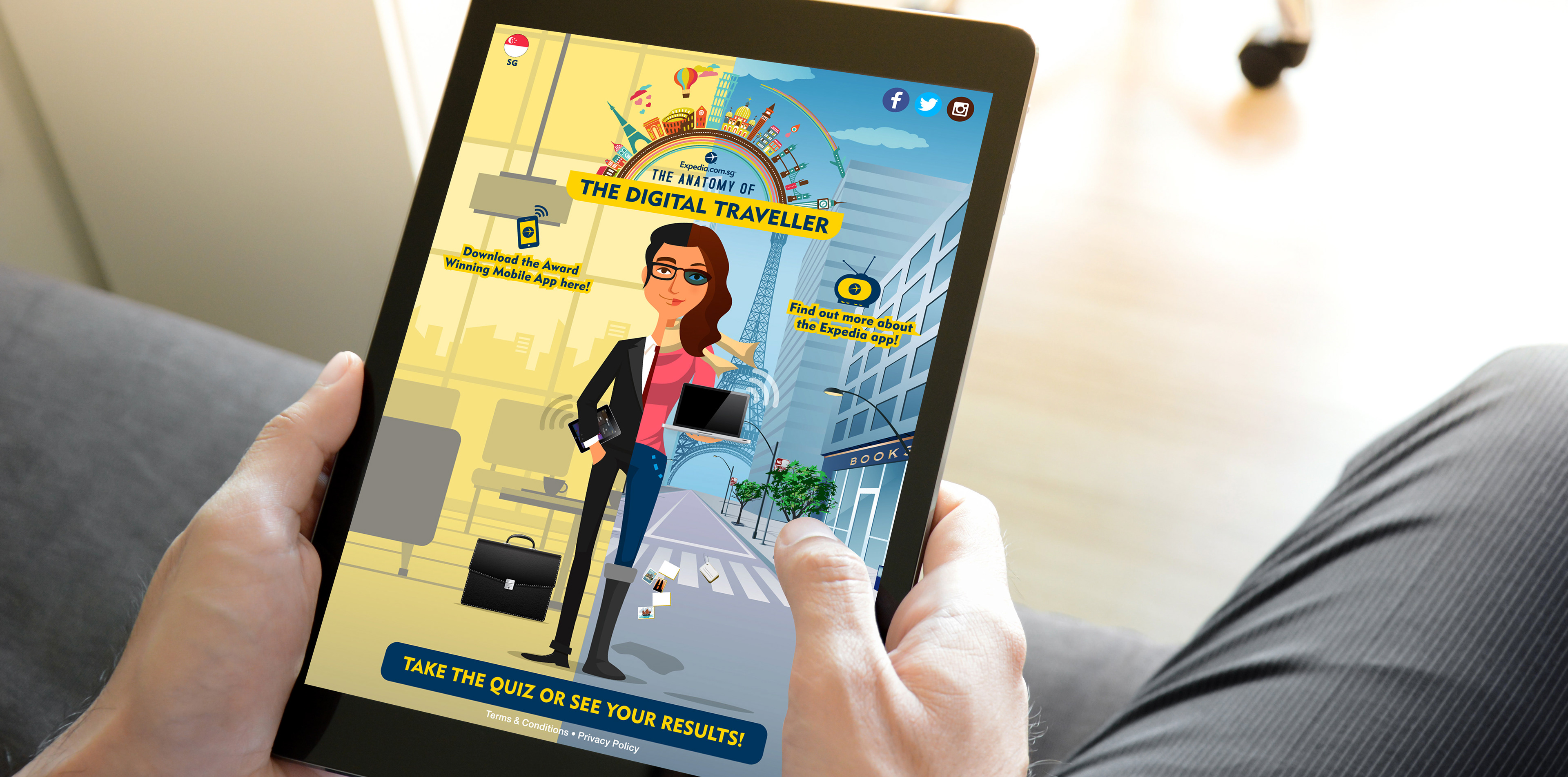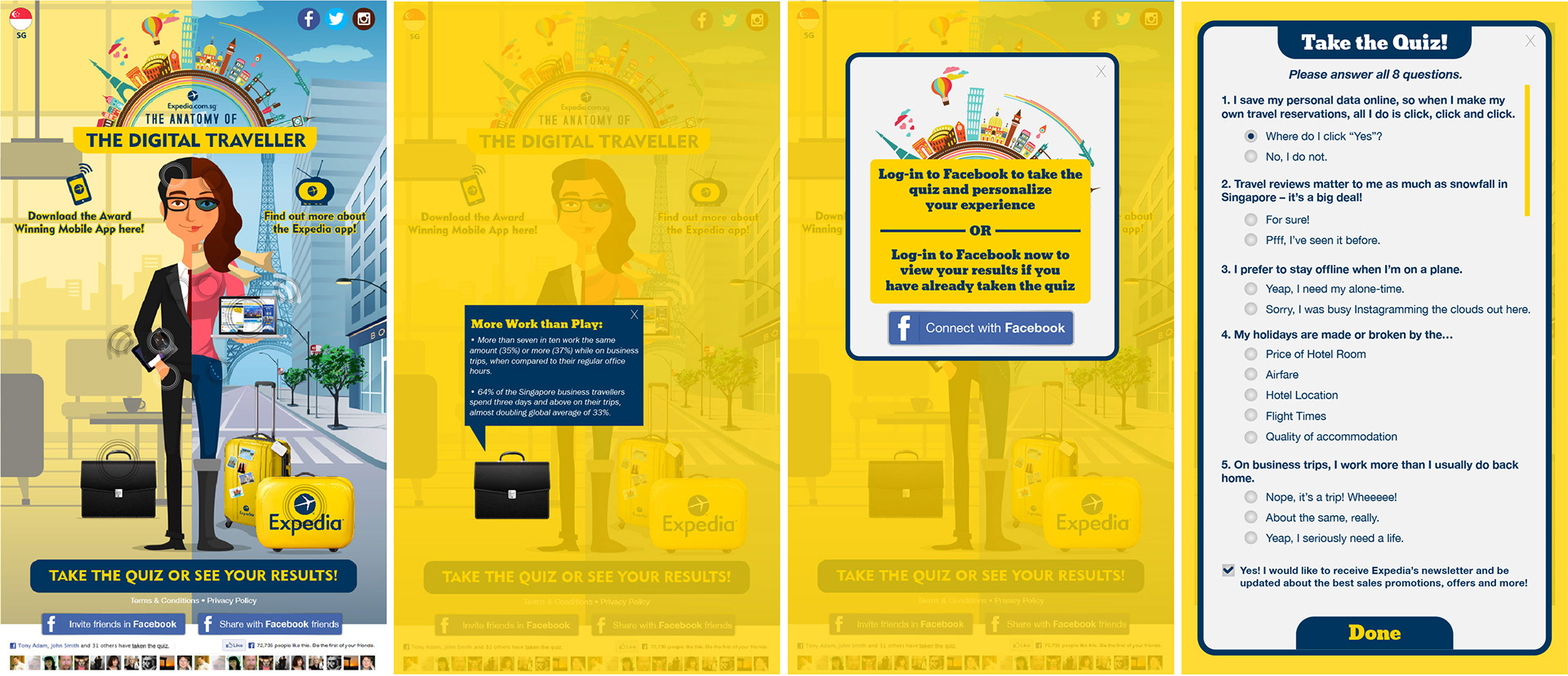 Expedia launched a Facebook App called The Digital Traveller, to encourage engagement and downloads for the Expedia App. Design and development was done for the Facebook App.